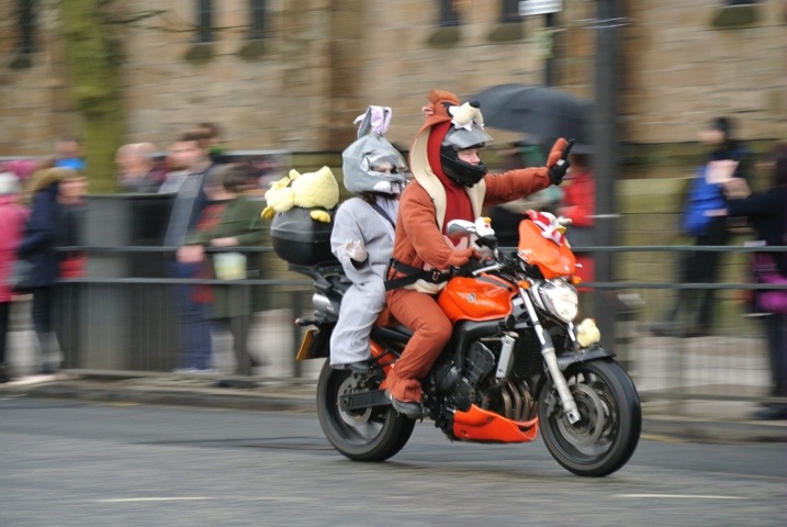 Other things that happened today – it took us forever to cross Great Western Road for the very worthy reason that we had to wait for hundreds of bikers to pass on the annual Yorkhill Easter Egg Run which raises money for the local children’s hospital. Some of them certainly dress up for the occasion: