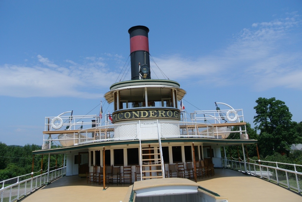 Shelburne is an outdoor museum with 37 buildings in 45 acres of parkland. What we hadn’t realised was that not only were the buildings historic (either moved from elsewhere or replicas), they were full of an amazing variety of exhibits – about 80,000 in total. The museum was founded in the 1950s by Electra Havemeyer Webb whose wealth must have been immense. The collections include paintings (several by both Monet and Degas to give you an idea of the quality), carriages, folk art, quilts, circus figures, furniture – and that’s just a few off the top of my head. The weirdest item though was the steamboat Ticonderoga which sailed Lake Champlain from 1906 until 1953 and which now sits in the middle of a lawn. We watched a video of how it was moved there – an immense feat of engineering which took months. As one guide said, Electra was not a lady who ever had to ask how much things cost, just how they could be done. Here’s the “Ti” in all its glory: