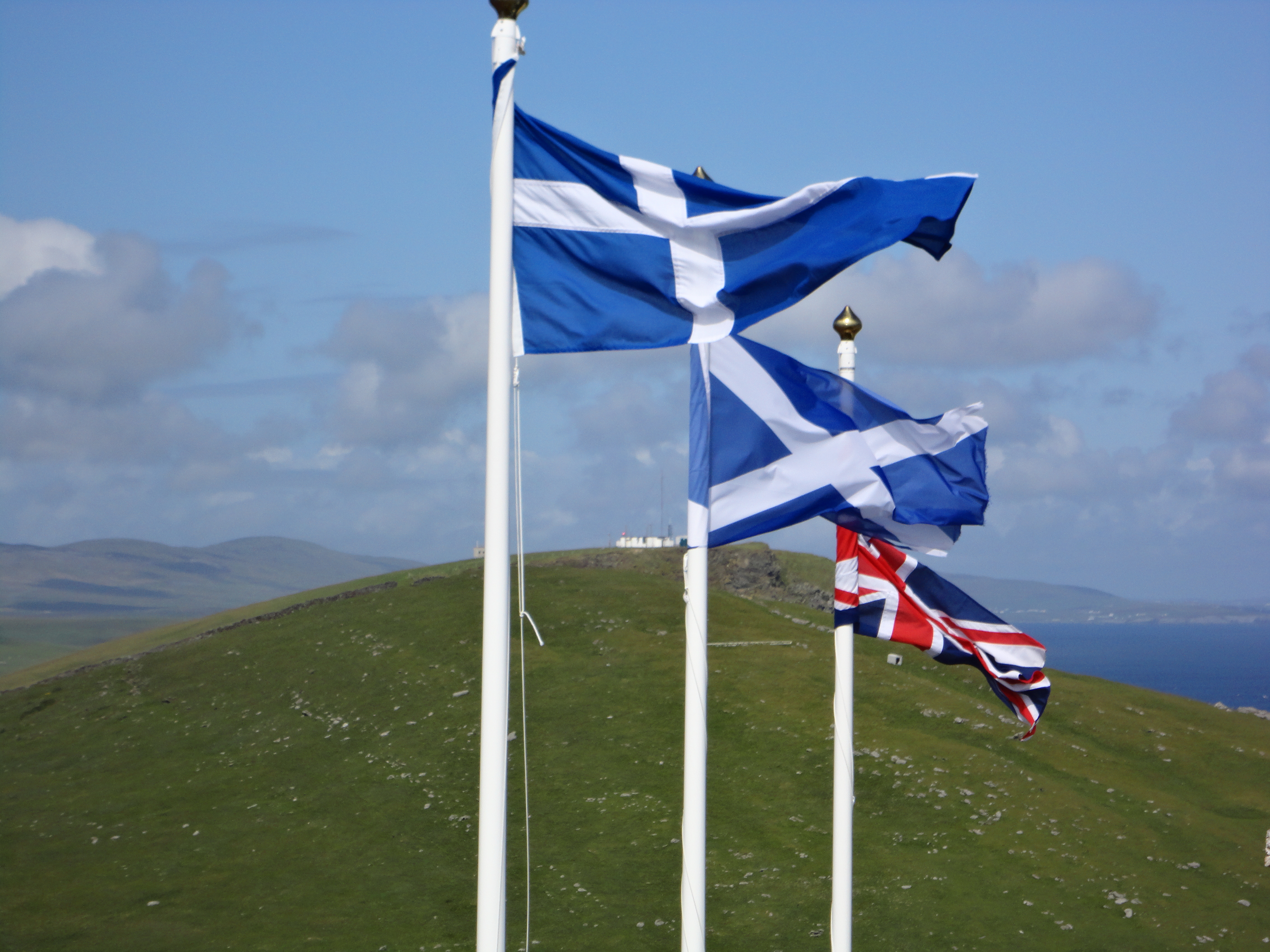 Flags of Shetland, Scotland and the UK.