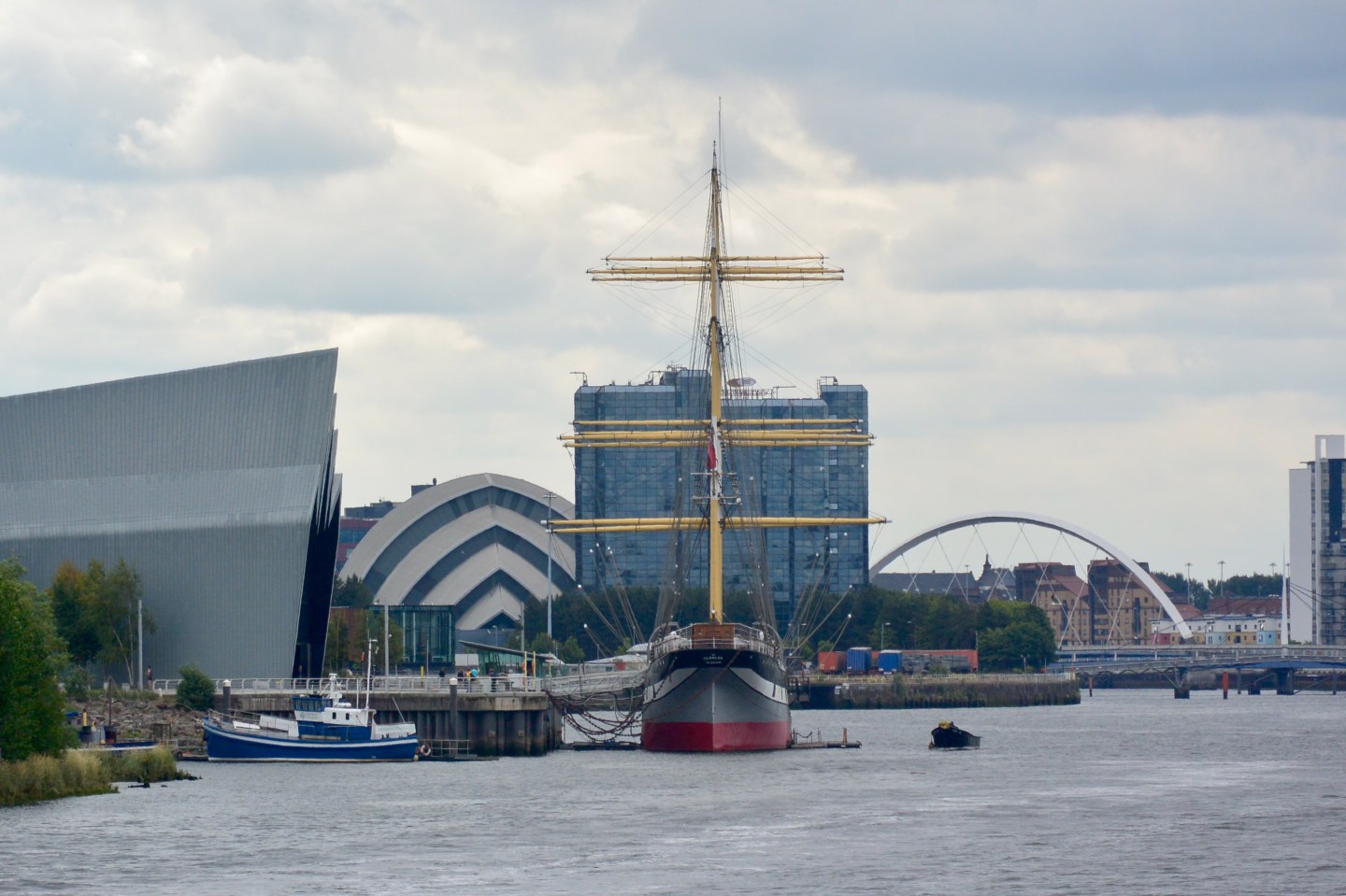Four Glasgow icons in one picture: Riverside Museum, the Armadillo, the Tall Ship and the Squinty Bridge