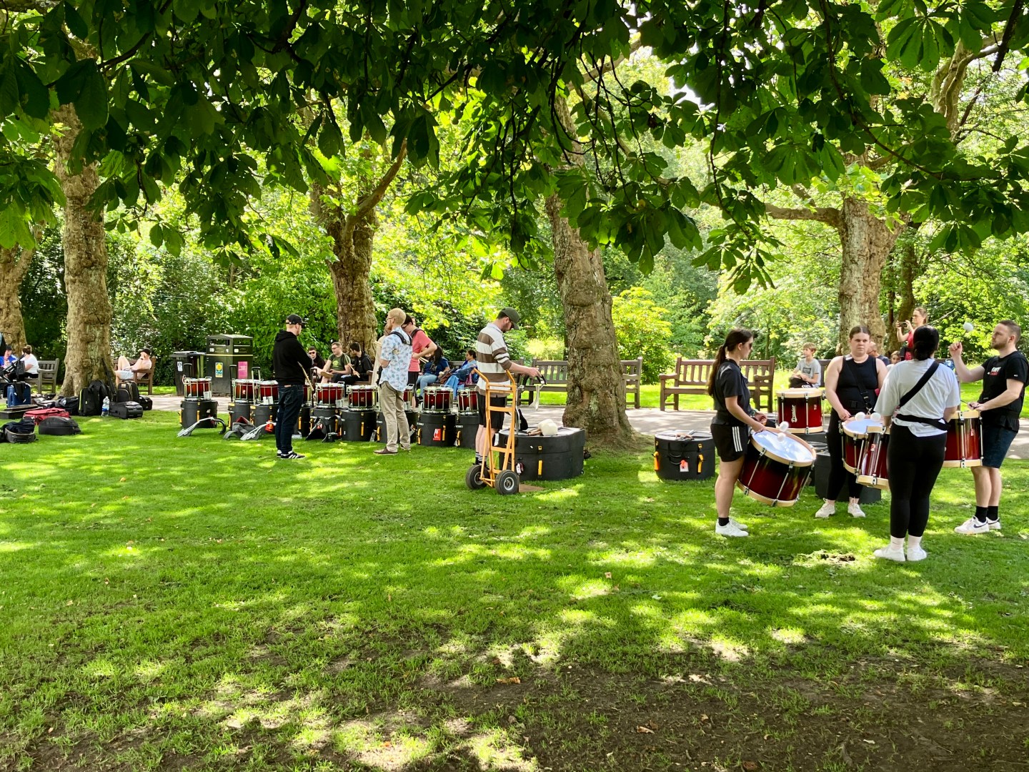 Pipe band practising in the Botanics