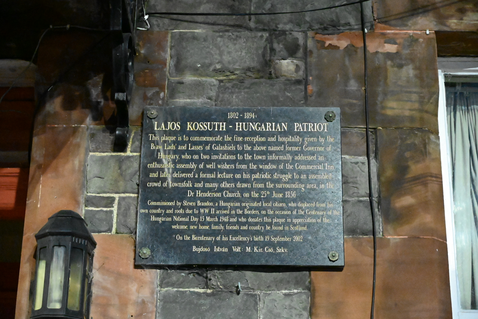Plaque to Kossuth, Hungarian patriot