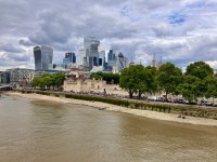 Tower with modern London behind it