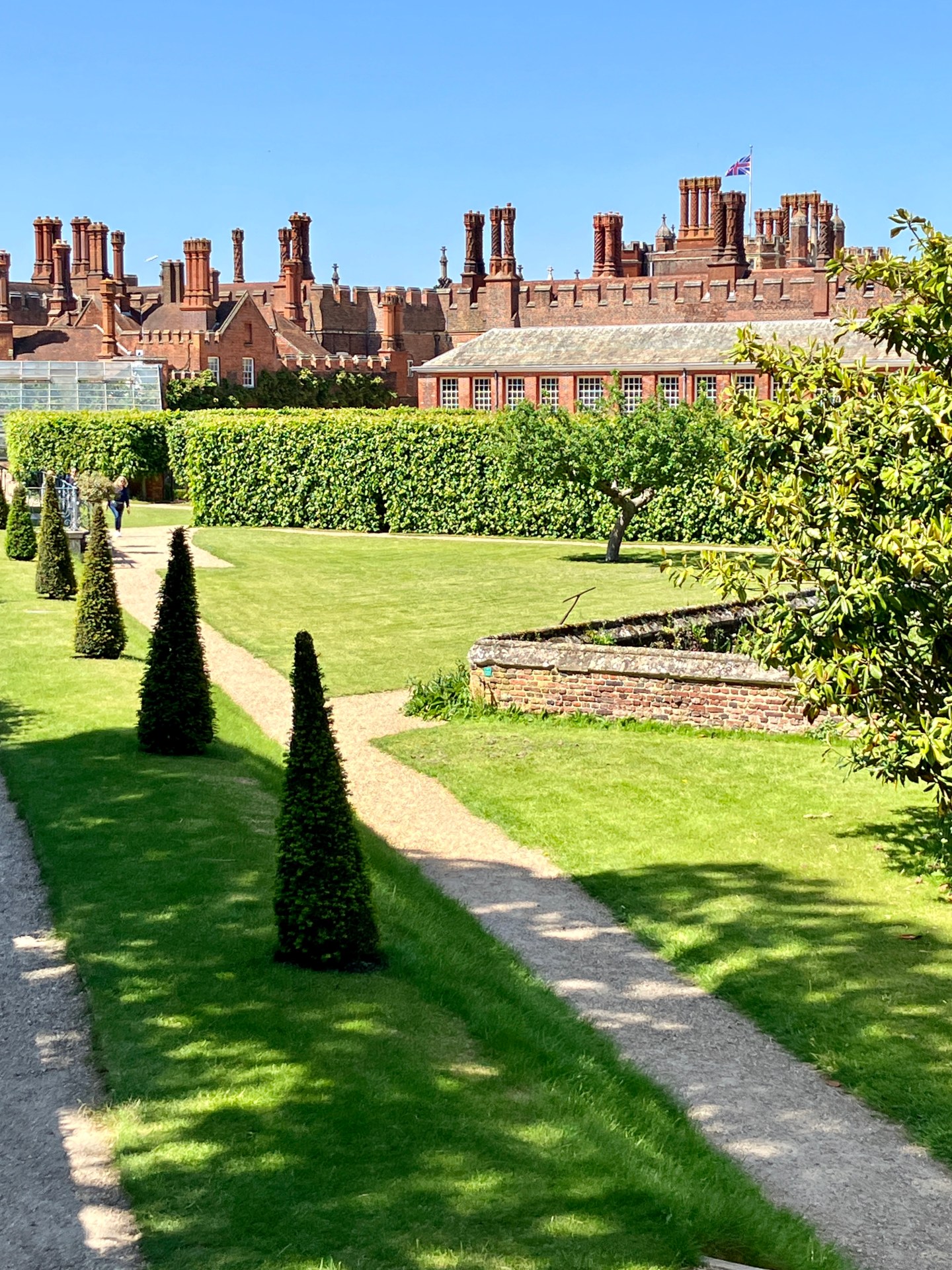 Hampton Court Gardens with Tudor buildings behind