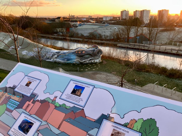 Also seen around town, the canal at Stockingfield Bridge now has information boards. Bella, in the background, looks as lovely as ever!