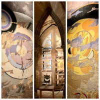 Tapestries in crypt. The middle one has all the elements of Glasgow’s Coat of Arms.