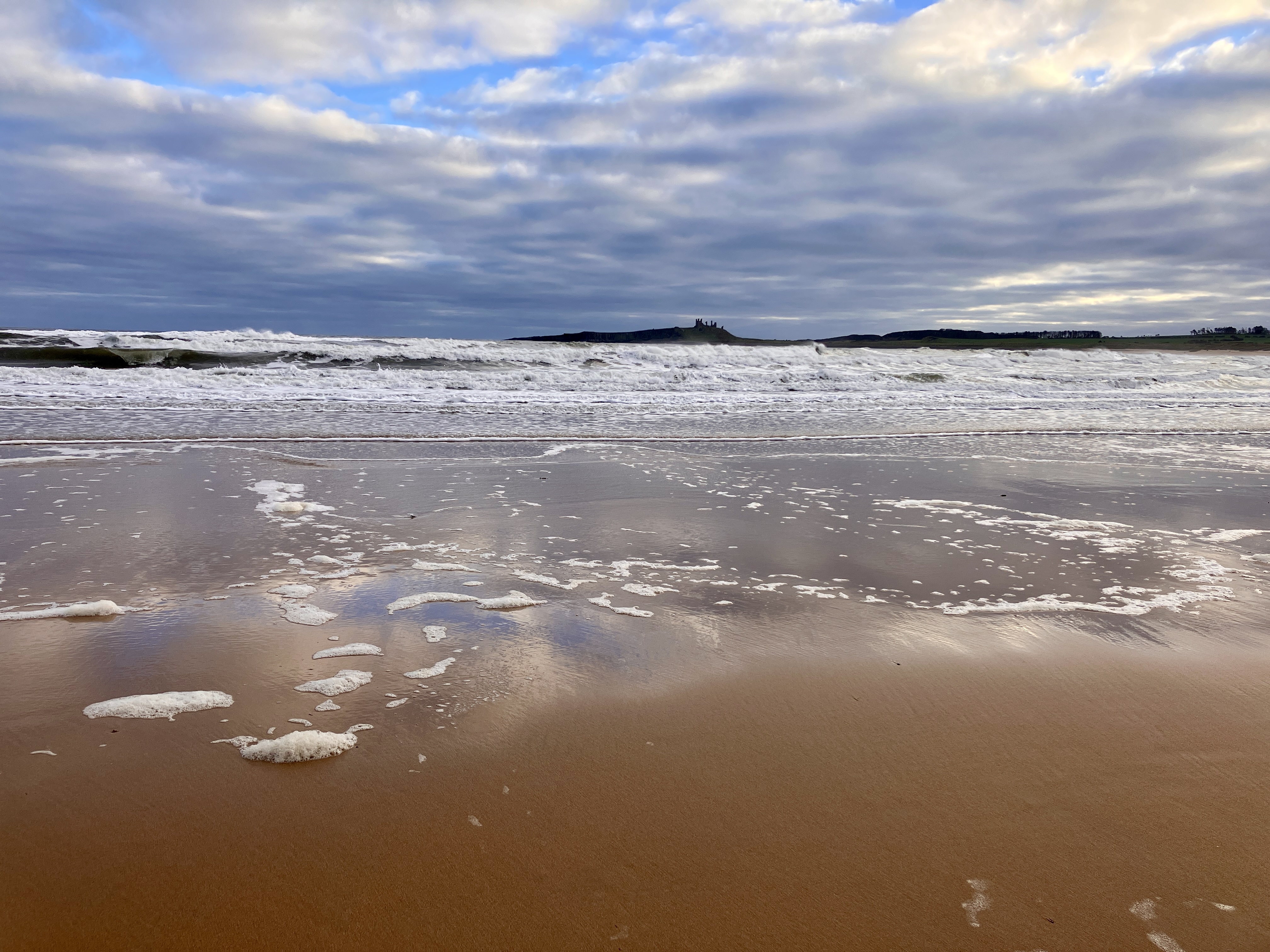 Looking across beach to Dunstanburgh