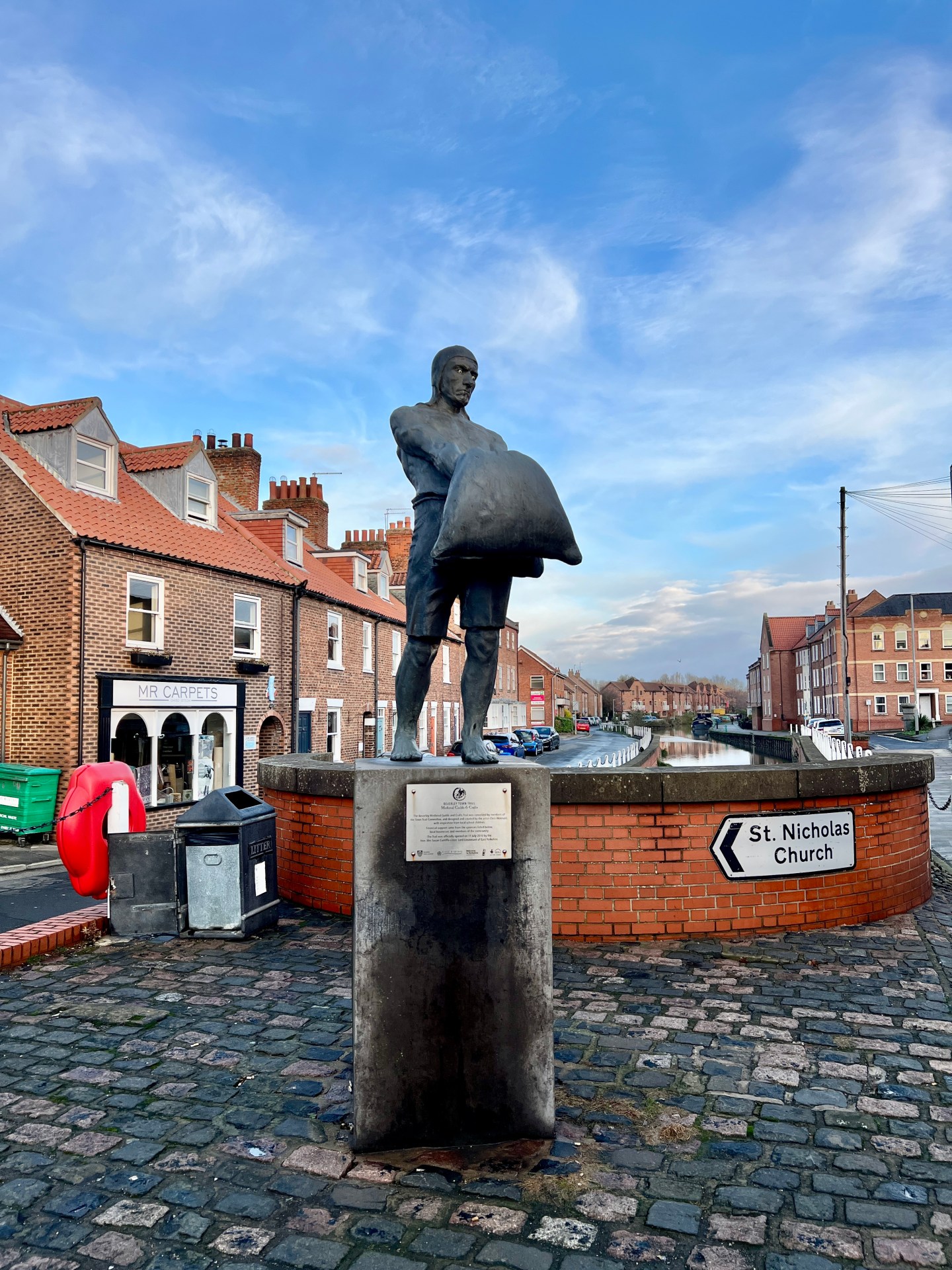 Start of the Beck with statues representing Medieval Guilds and Crafts